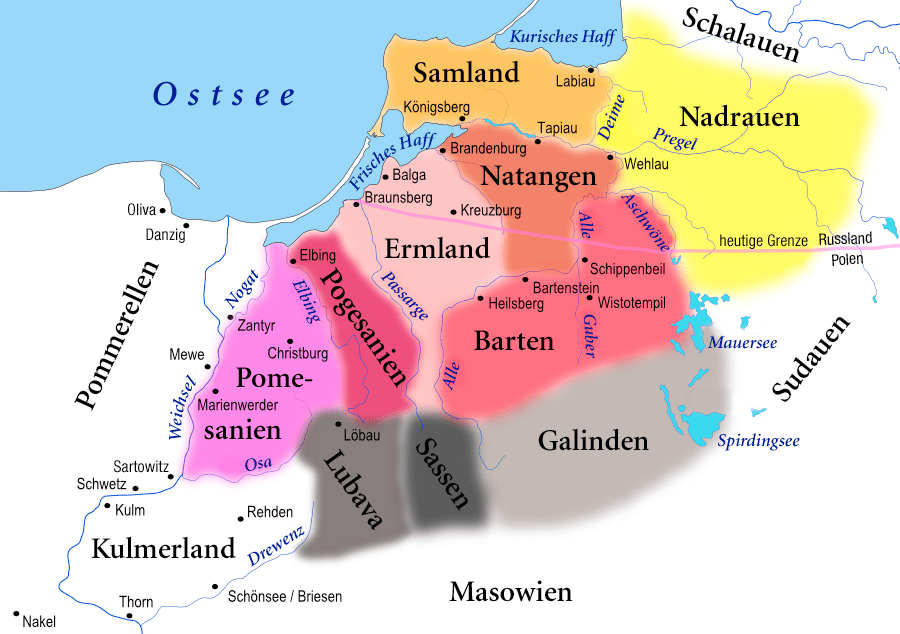 Bildnachweis © 1 Guilhem06, CC BY-SA 3.0, unbekannt; 2 Unbekannter Autor, This file comes from Gallica Digital Library and is available under the digital ID btv1b84472995/f481, gemeinfrei; 3 Unbekannter Autor, This file comes from Gallica Digital Library and is available under the digital ID btv1b84472995/f484, gemeinfrei; 4 Eran Feldman, CC BY 2.5, unverändert; 5 Master of the Codex Manesse – http://digi.ub.uni-heidelberg.de/diglit/cpg848/0523, gemeinfrei, unverändert; 6 Unbekannter Autor – Gerhard von Glinski, Peter Wörster: Königsberg. Die ostpreußische Hauptstadt in Geschichte und Gegenwart. Westkreuz-Verlag, Berlin Bonn 1992, ISBN 3-922131-68-9, S. 8., gemeinfrei, unverändert; 7 Renata3, translated by NordNordWest and Mewa767 – Own work, using Main: Map used to illustrate article on Prussians in Encyclopedia Lithuanica, volume IV, page 367. It generally agrees with Map by Marija Gimbutas published in The Balts (1963). Other: Map from National Museum of Lithuania and maps presented in William Urban (2000). The Prussian Crusade, ISBN 0-929700-28-7, CC BY-SA 3.0 unverändert; 8 Rozporządzenie Prezydenta Rzeczypospolitej Polskiej z dnia 13 kwietnia 2005 r. w sprawie uznania za pomnik historii (Dz. U. nr 64 z 2005 poz. 568). – http://isap.sejm.gov.pl/Download?id=WDU20050640568&type=2, gemeinfrei, unverändert; 9 Andreas Rockstein, CC BY 3.0, unverändert; 10 Ronald Preuss, CC BY-SA 2.5, unverändert; 11 DerHexer; derivate work: Carschten – Own work, CC BY-SA 3.0, unverändert; 12 Putzgers Historischer Schul-Atlas, gemeinfrei, unverändert;